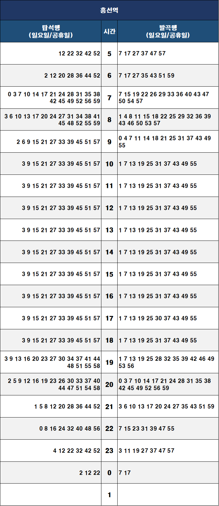 시간표 참고하여 출퇴근 및 여행일정 세우시기 바랍니다.