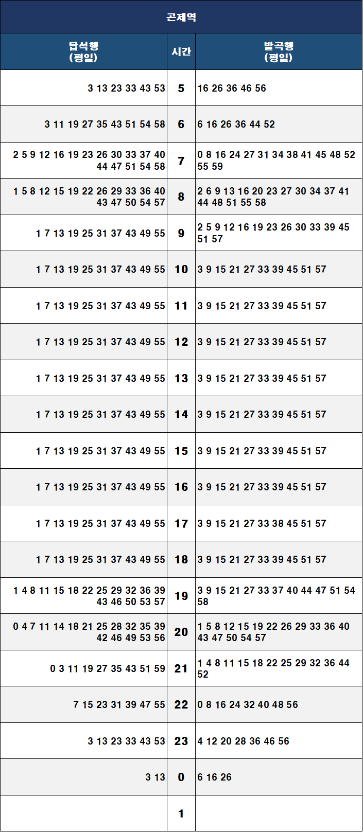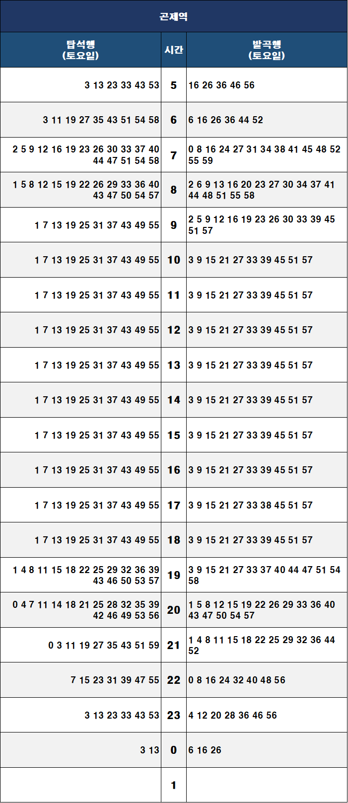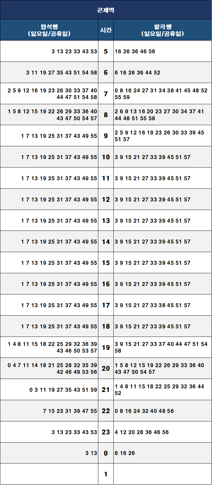 시간표 참고하여 출퇴근 및 여행일정 세우시기 바랍니다.