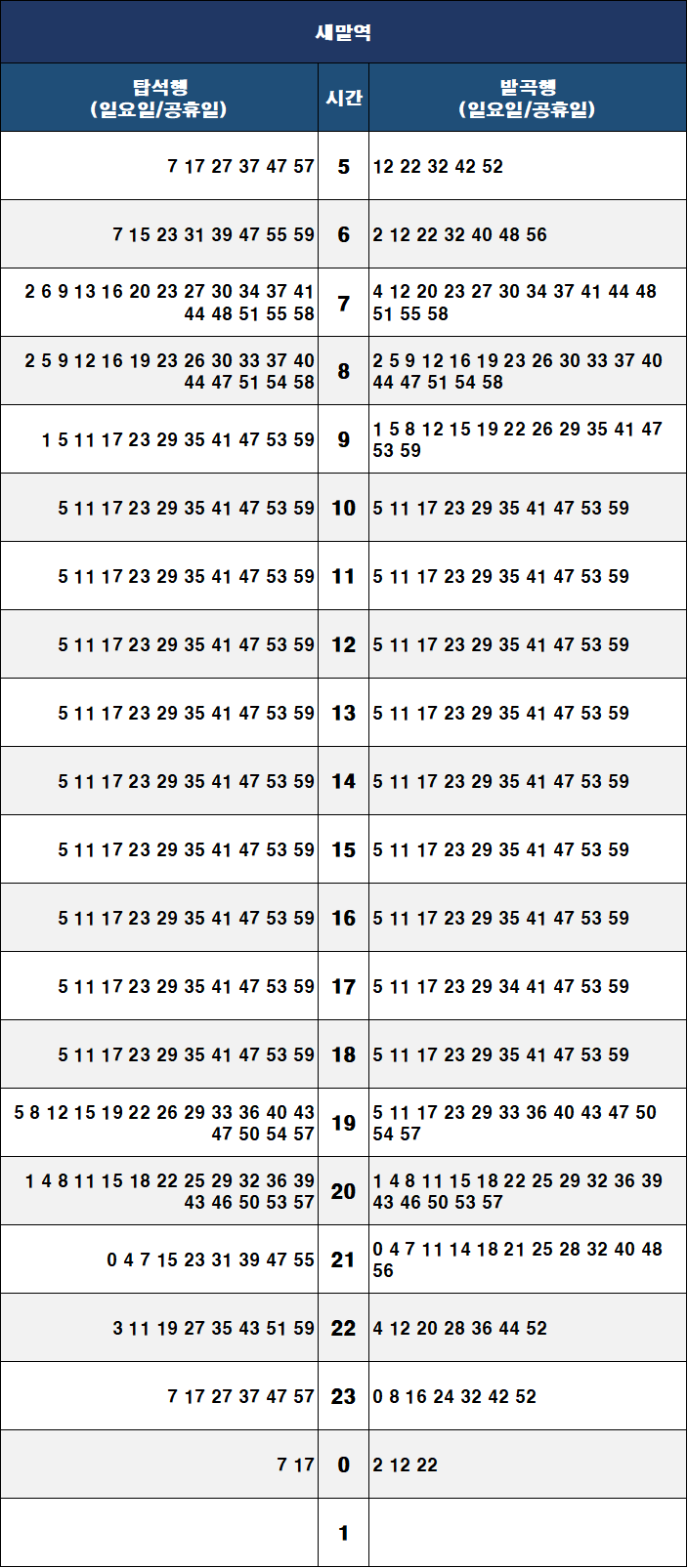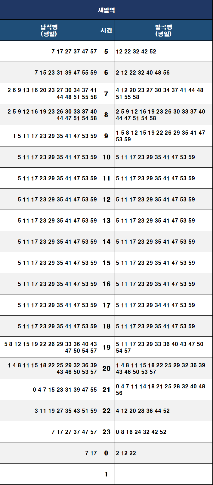 시간표 참고하여 출퇴근 및 여행일정 세우시기 바랍니다.