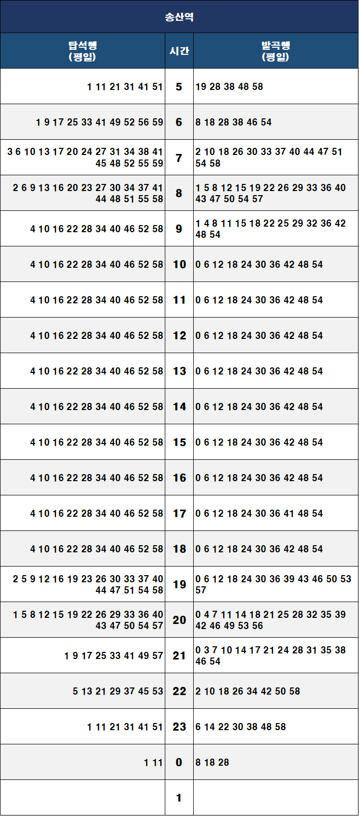 | 탑석행 | 05:01 | 05:01 | 05:01 |