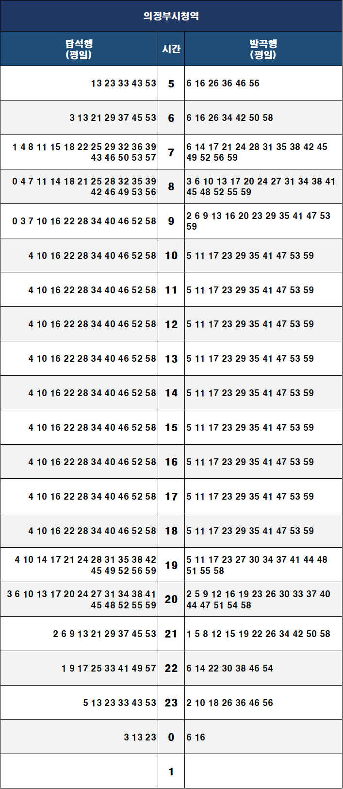 시간표 참고하여 출퇴근 및 여행일정 세우시기 바랍니다.
