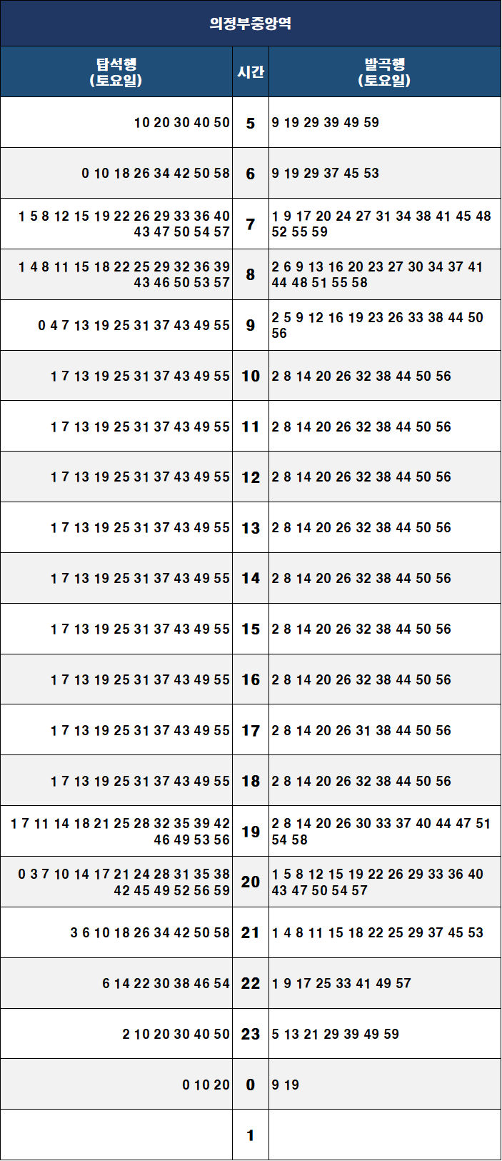 시간표 참고하여 출퇴근 및 여행일정 세우시기 바랍니다.