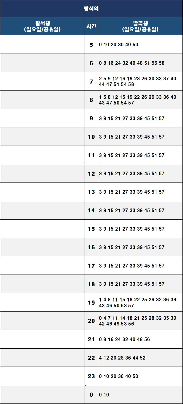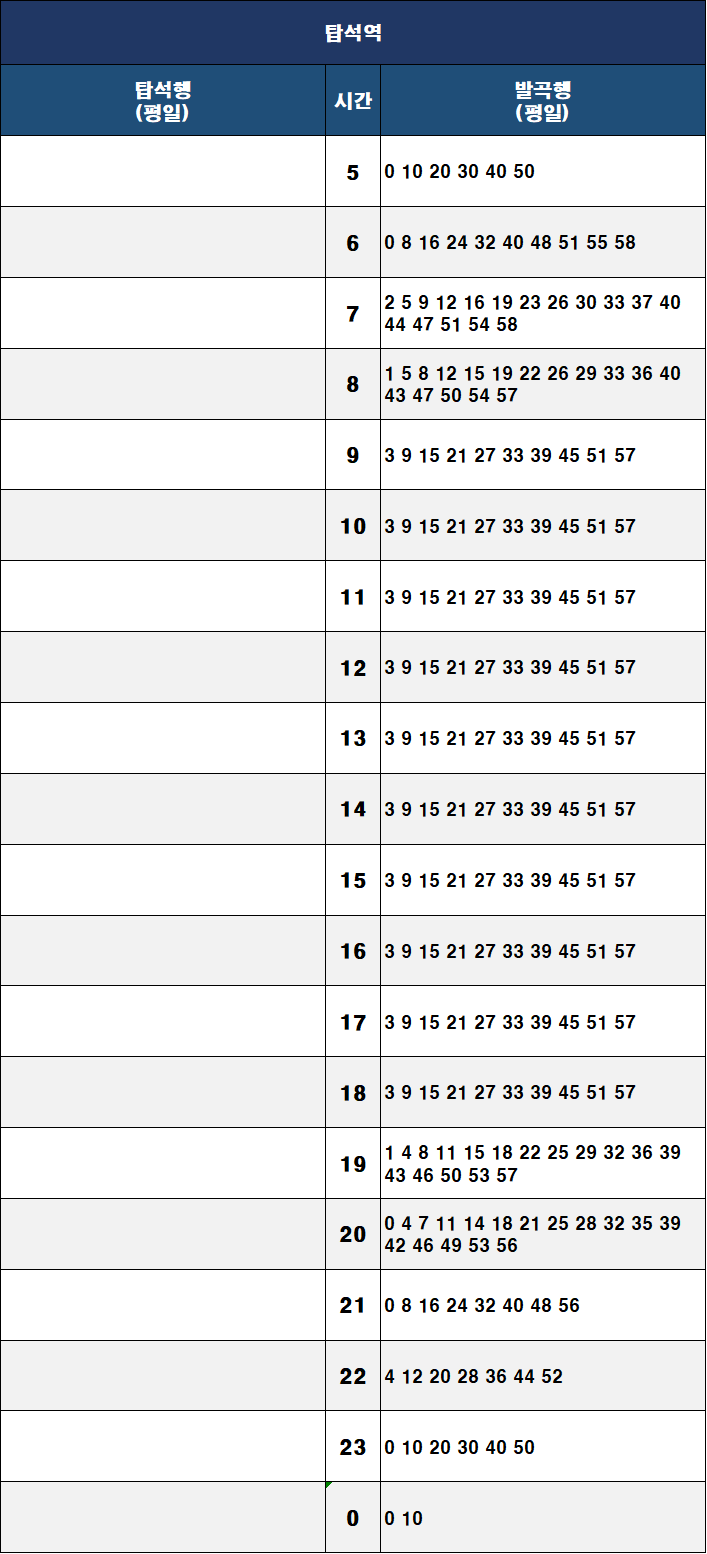 | 발곡행 | 05:00 | 05:00 | 05:00 |