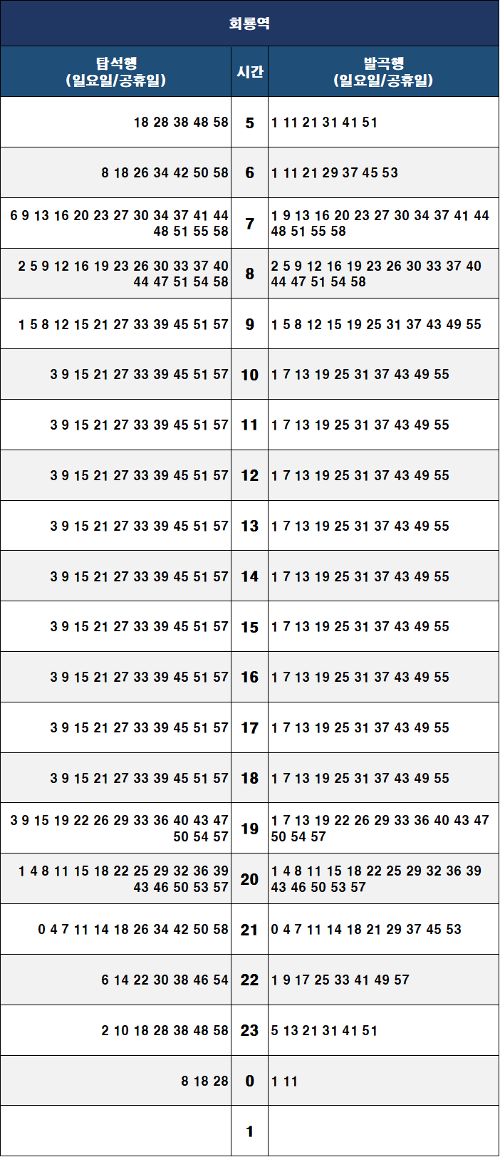 시간표 참고하여 출퇴근 및 여행일정 세우시기 바랍니다.