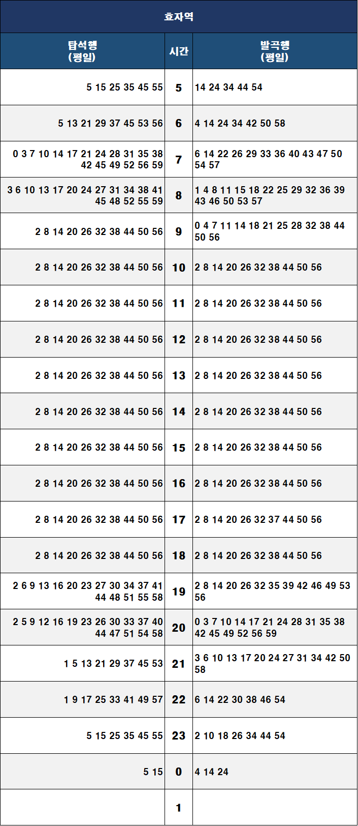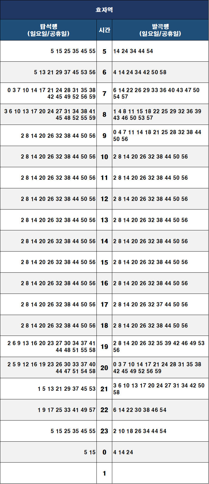 시간표 참고하여 출퇴근 및 여행일정 세우시기 바랍니다.