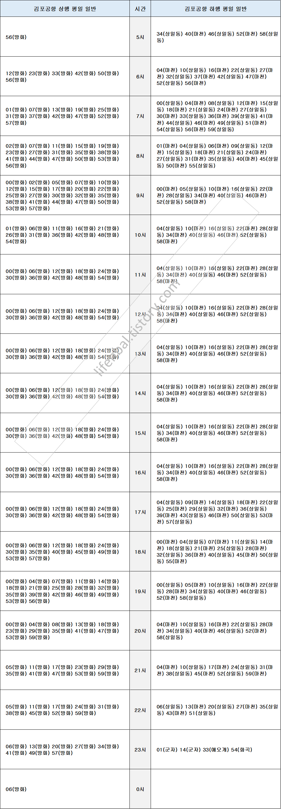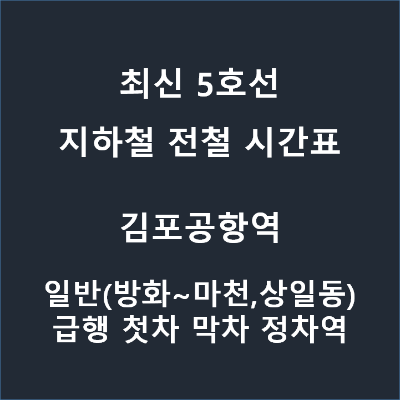최신 지하철 5호선 김포공항역 일반 열차 열차 첫차 막차 정차역 시간표입니다.