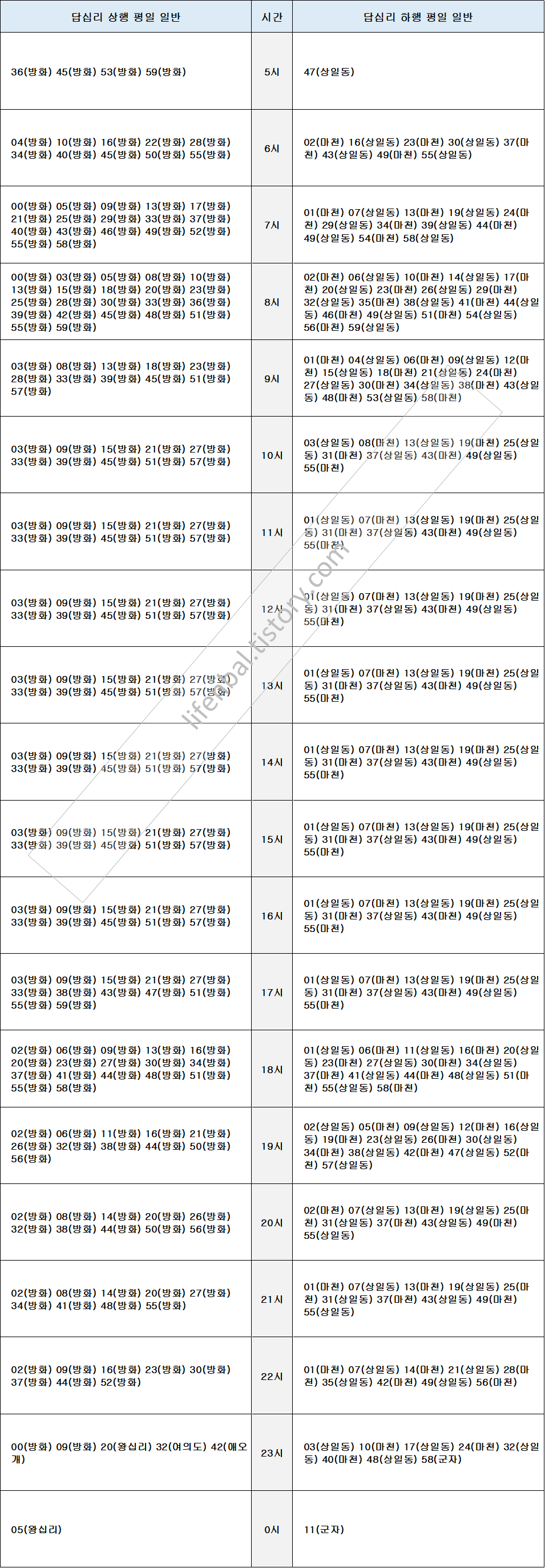 최신 지하철 5호선 답십리역 일반 열차 열차 첫차 막차 정차역 시간표입니다.