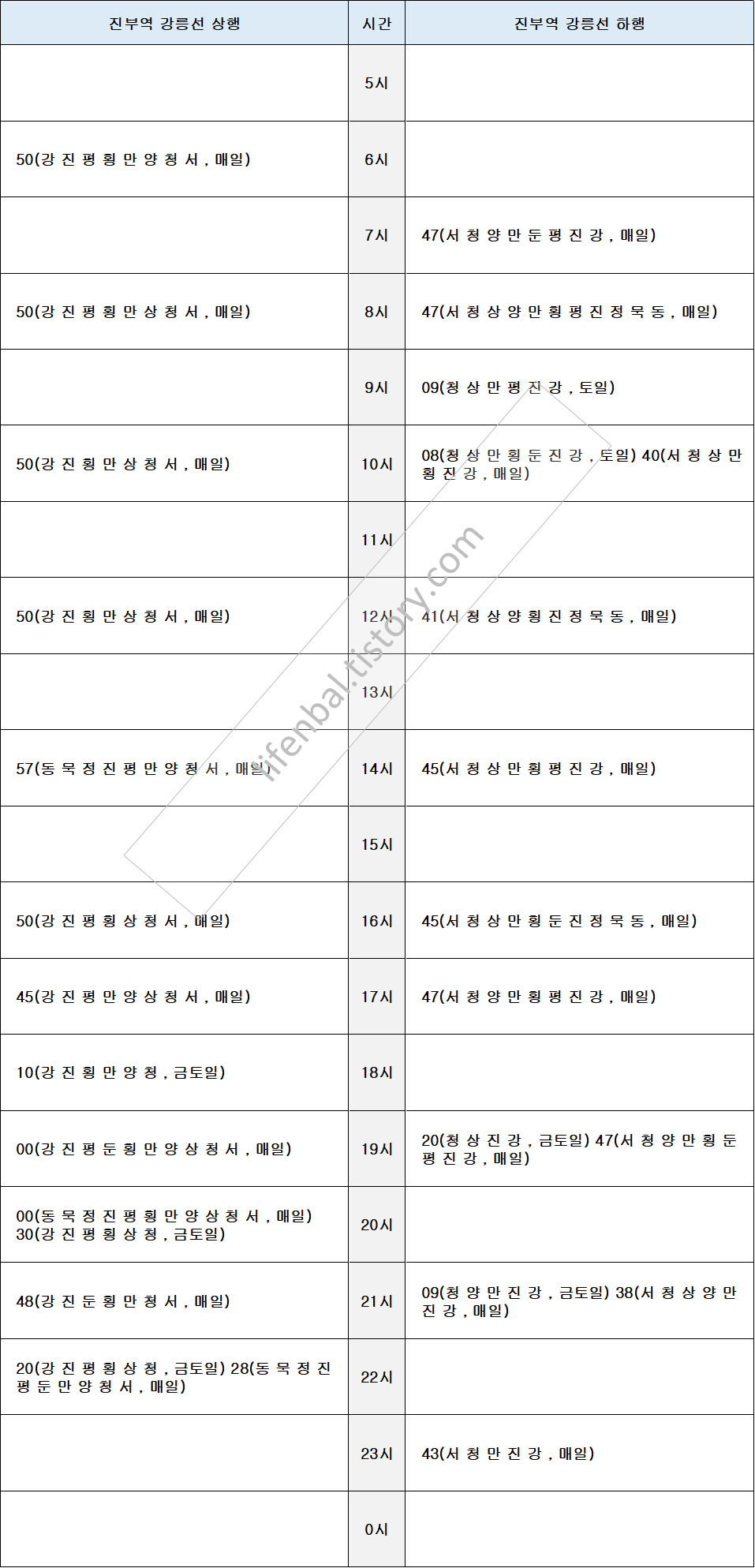 시간표 참고하여 출퇴근 및 여행일정 세우시기 바랍니다.