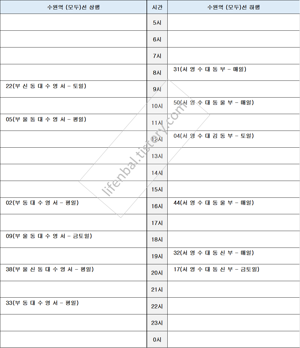 시간표 참고하여 출퇴근 및 여행일정 세우시기 바랍니다.