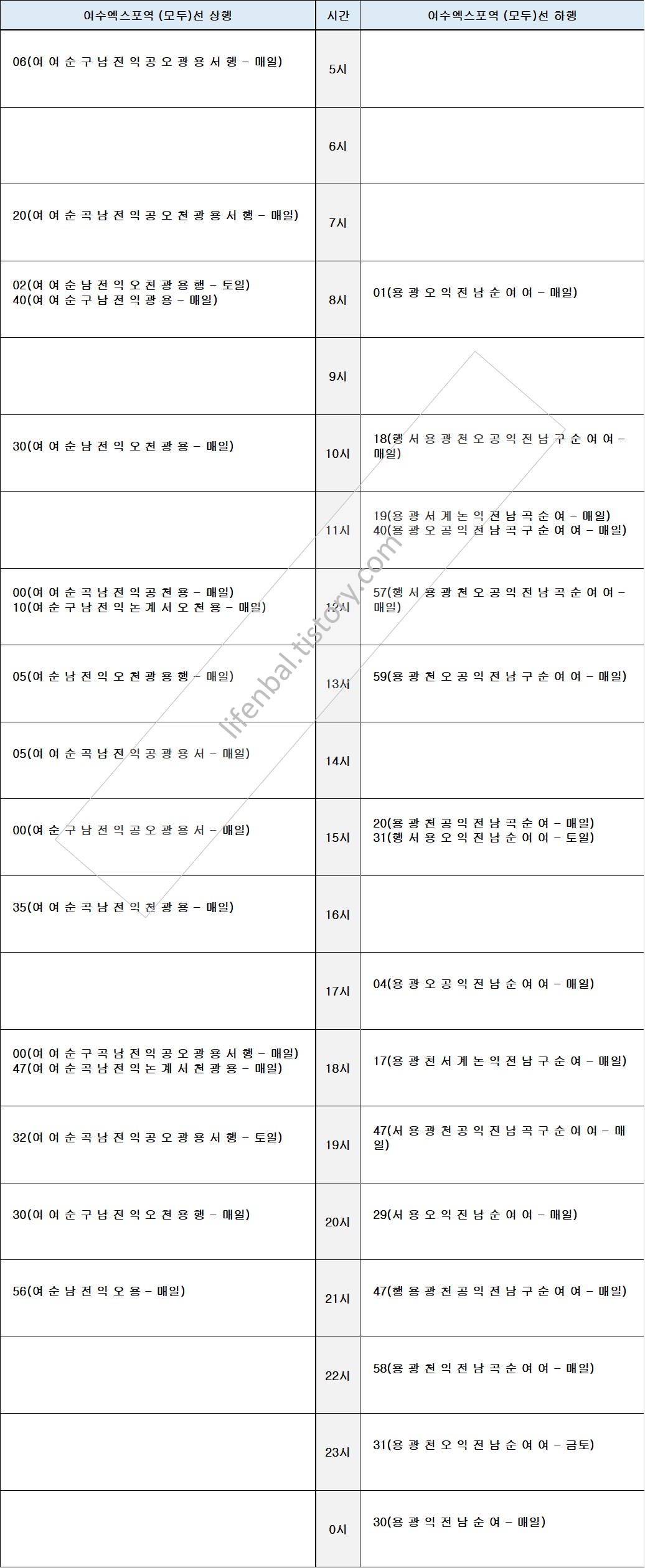 시간표 참고하여 출퇴근 및 여행일정 세우시기 바랍니다.