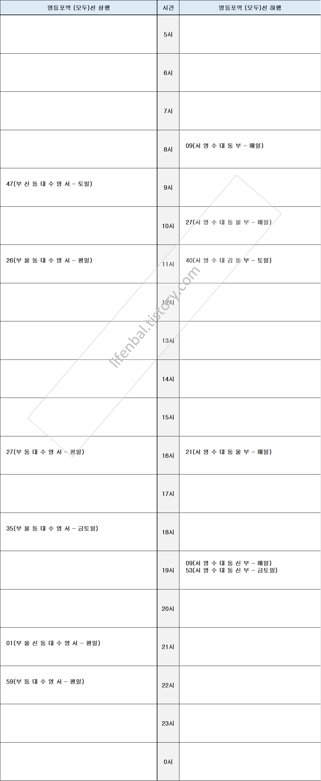 시간표 참고하여 출퇴근 및 여행일정 세우시기 바랍니다.