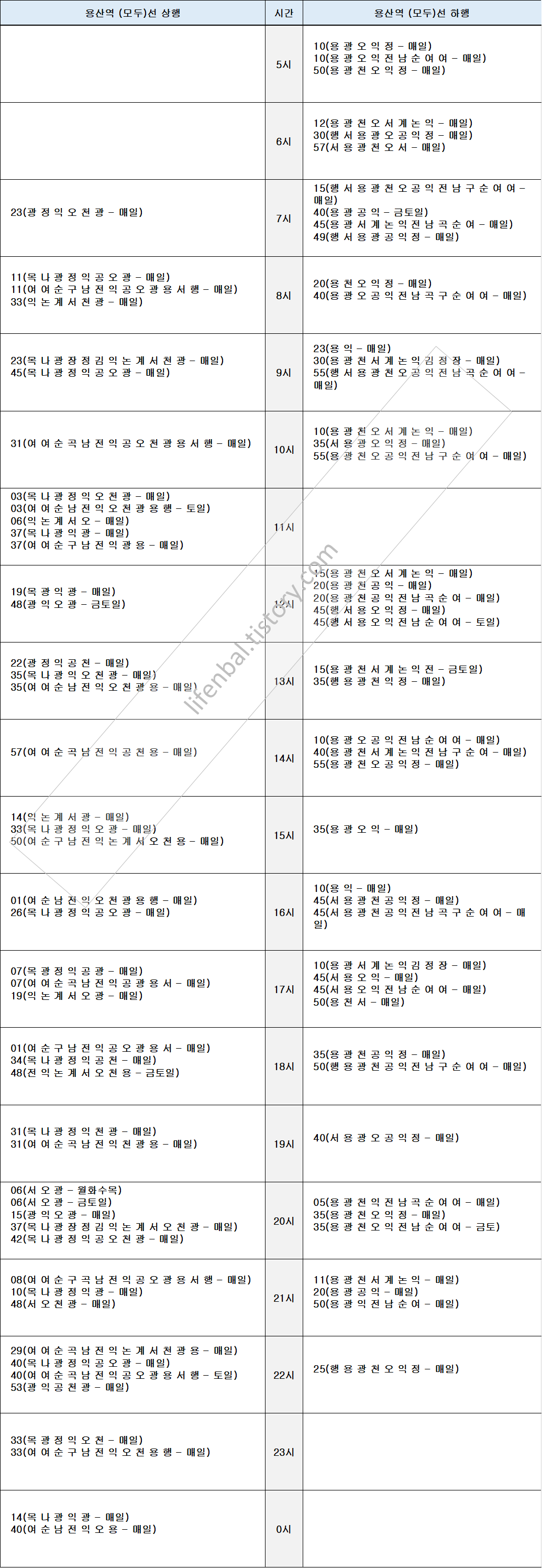 시간표 참고하여 출퇴근 및 여행일정 세우시기 바랍니다.