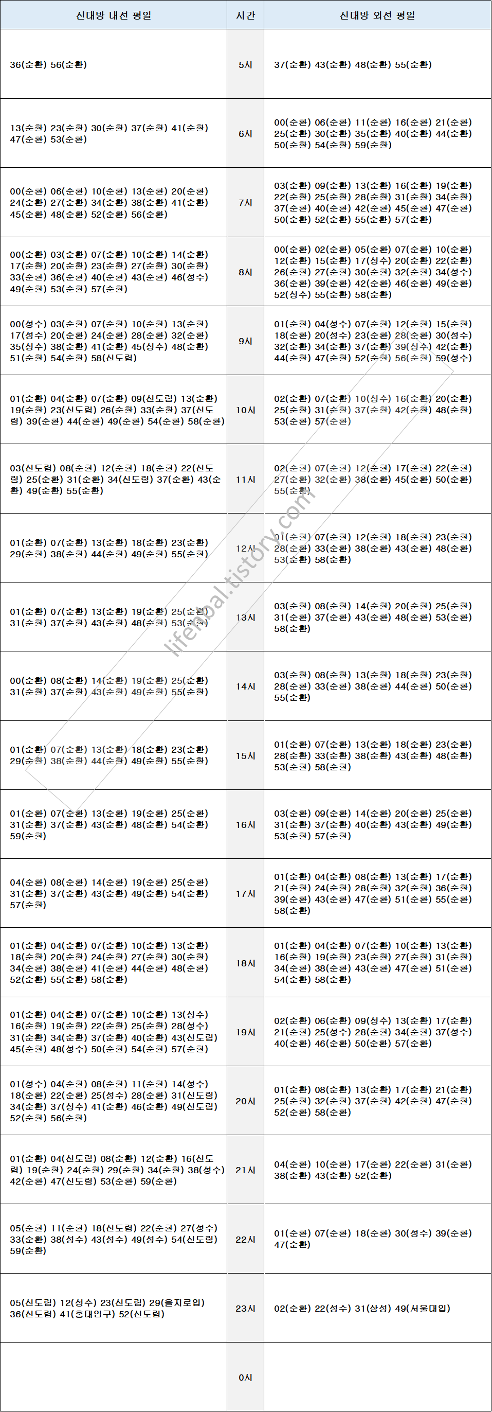 최신 지하철 2호선 신대방역 일반 열차 열차 첫차 막차 정차역 시간표입니다.