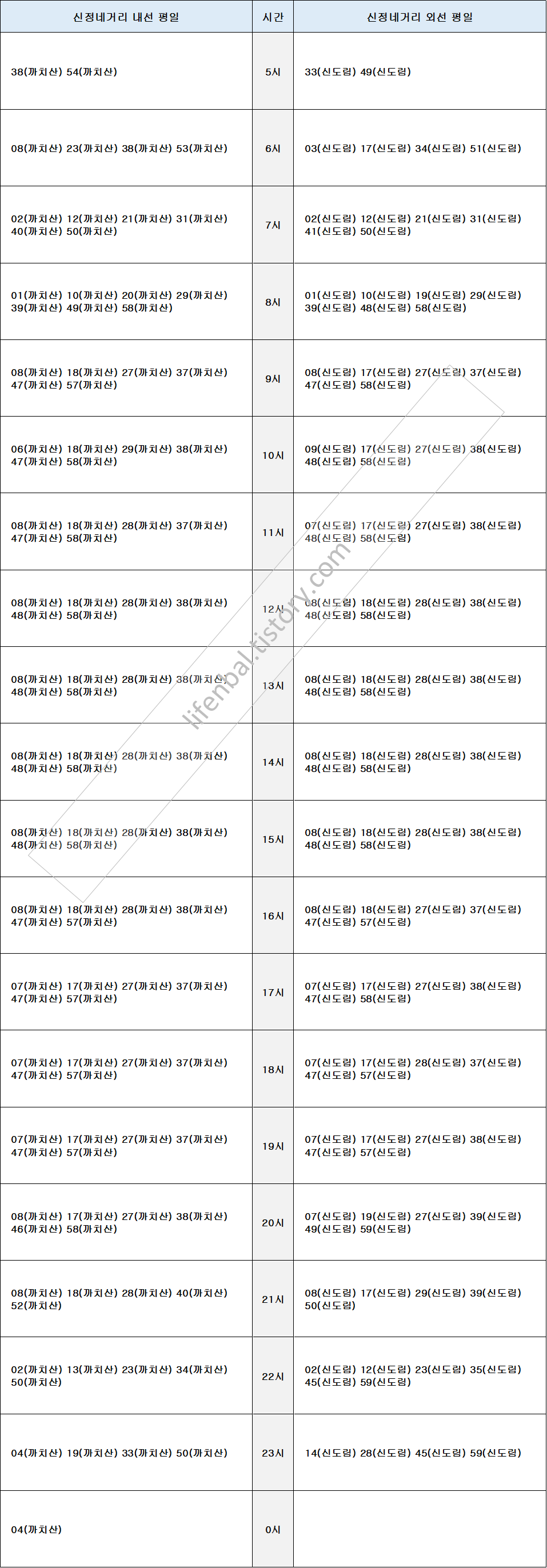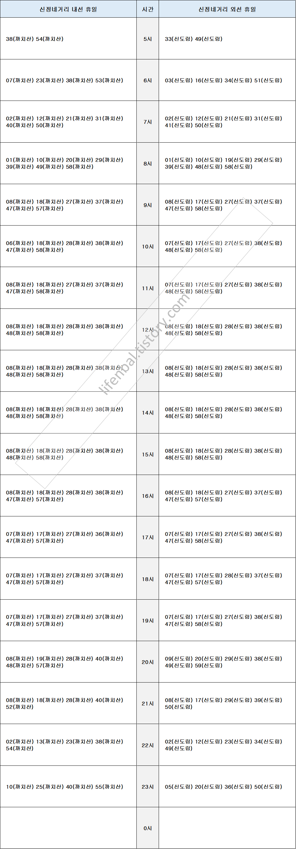 최신 지하철 2호선 신정네거리역 일반 열차 열차 첫차 막차 정차역 시간표입니다.