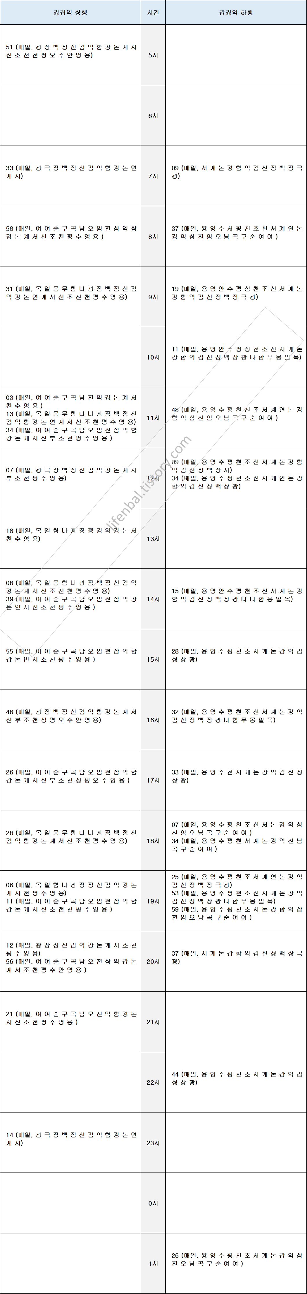 시간표 참고하여 출퇴근 및 여행일정 세우시기 바랍니다.