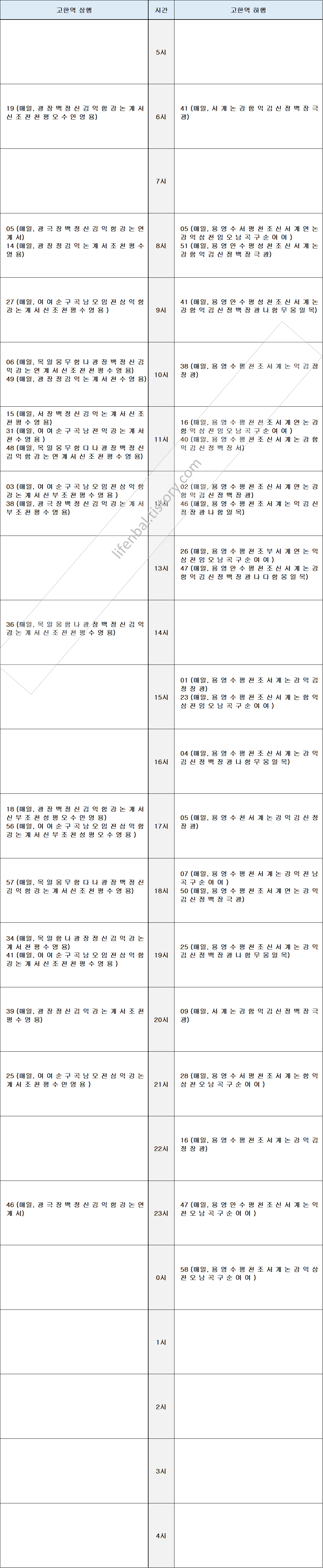 시간표 참고하여 출퇴근 및 여행일정 세우시기 바랍니다.