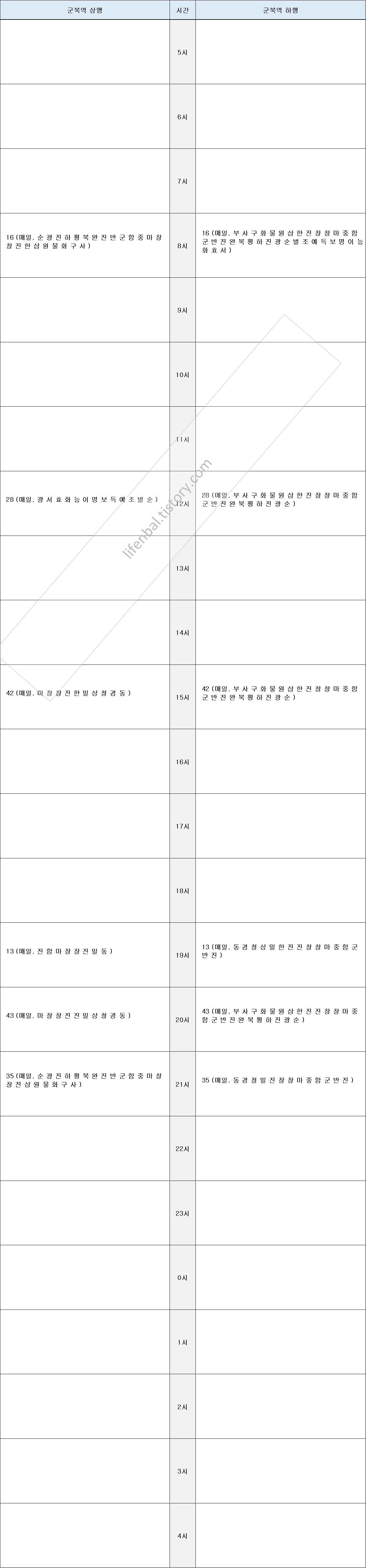 시간표 참고하여 출퇴근 및 여행일정 세우시기 바랍니다.