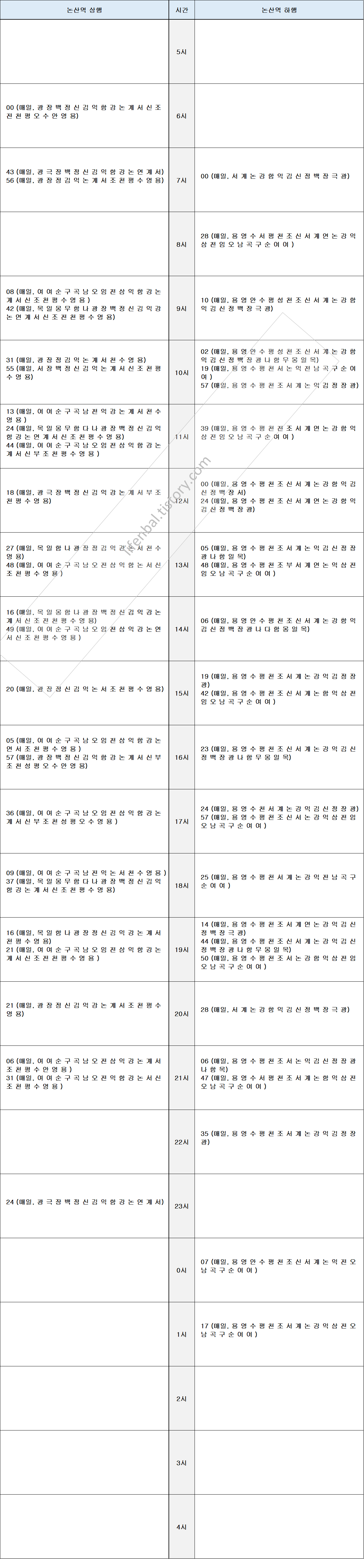 ※ 논산역 기차 열차 시간표 (전라선 호남선)