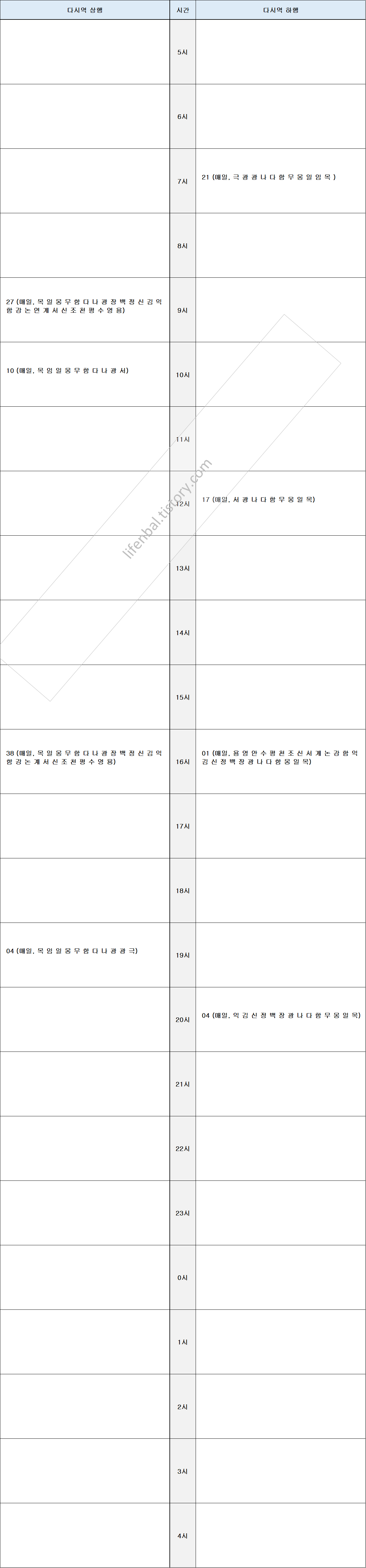 - 역별 각 노선별 시간표 첨부