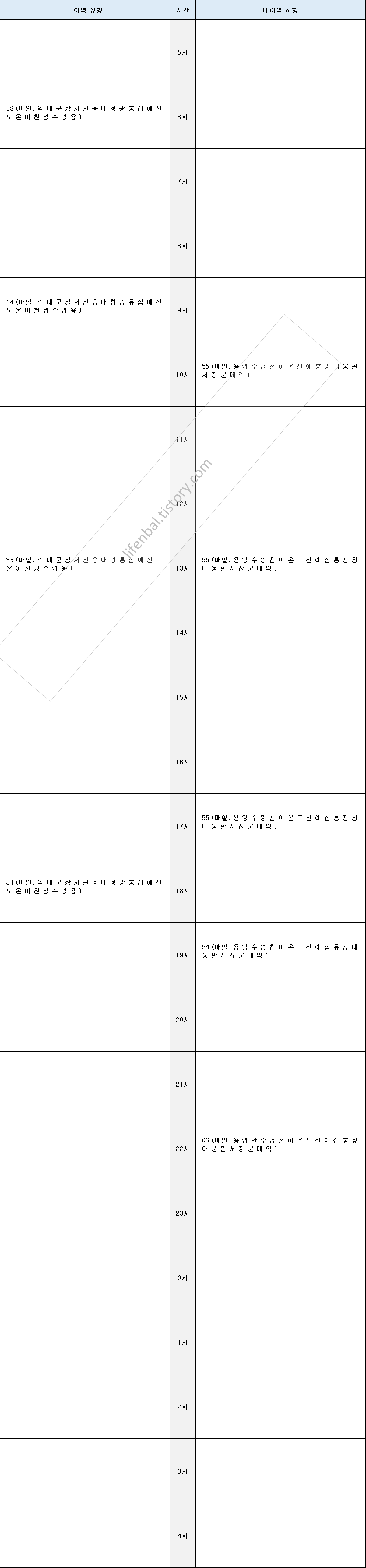 시간표 참고하여 출퇴근 및 여행일정 세우시기 바랍니다.