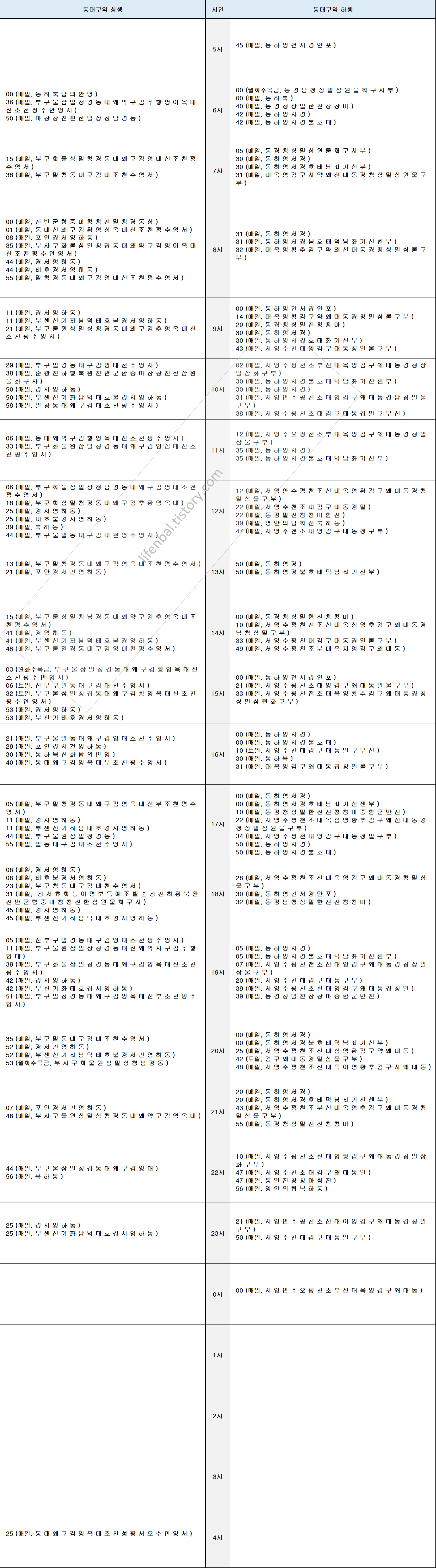 시간표 참고하여 출퇴근 및 여행일정 세우시기 바랍니다.