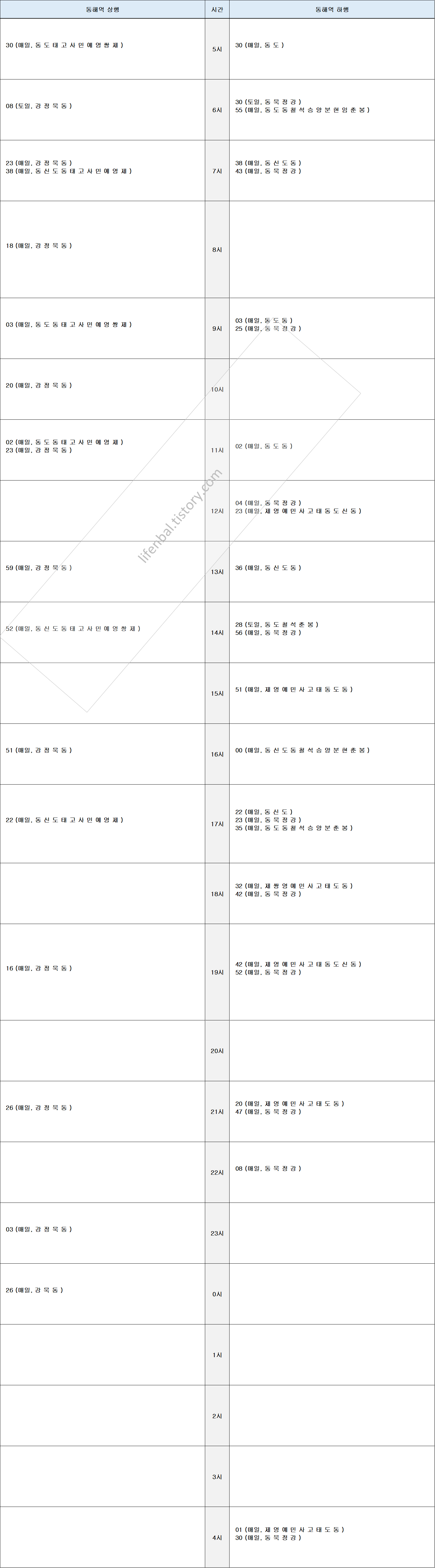 시간표 참고하여 출퇴근 및 여행일정 세우시기 바랍니다.
