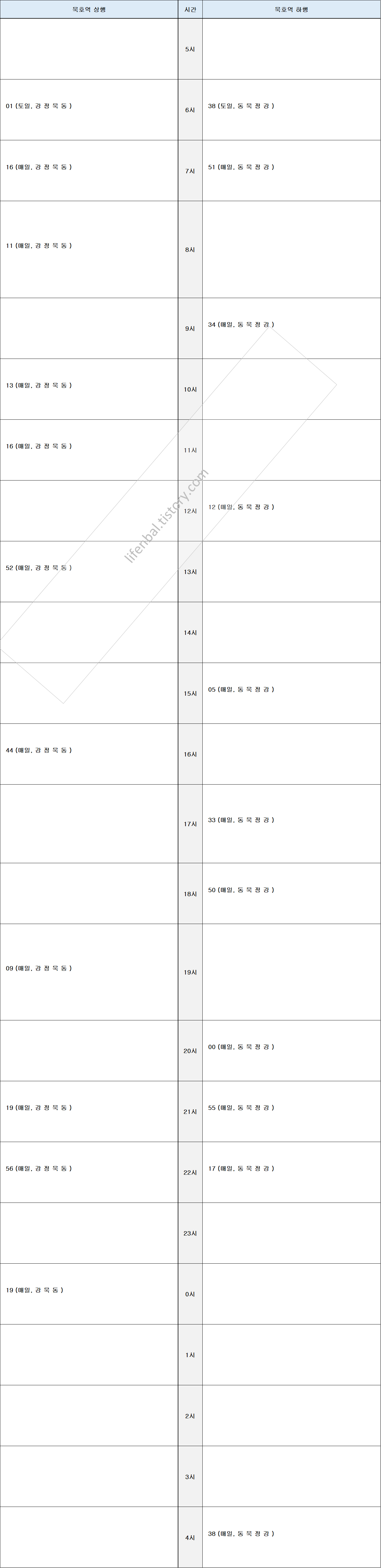 ※ 묵호역 기차 열차 시간표 (동해셔틀)