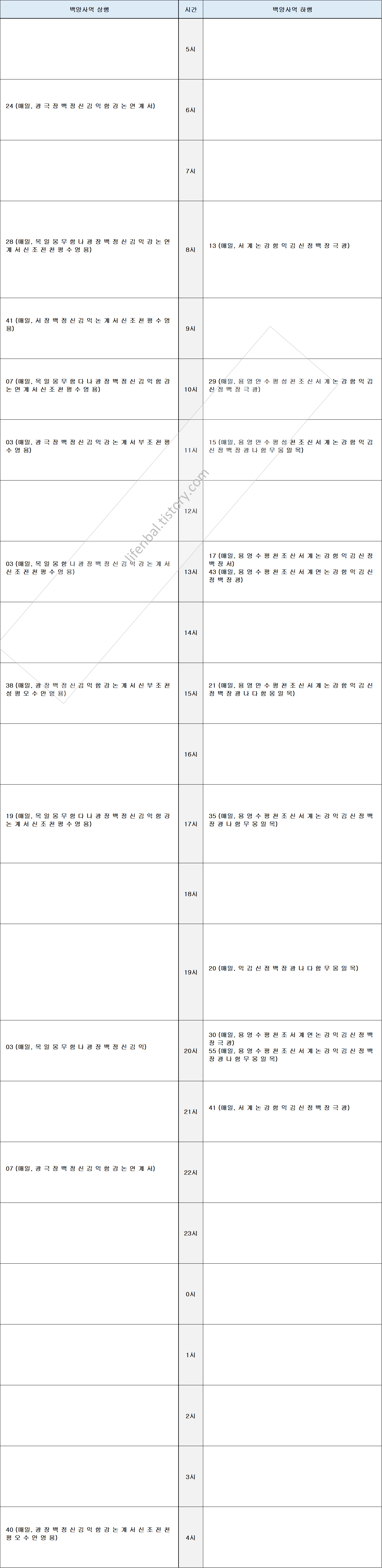 시간표 참고하여 출퇴근 및 여행일정 세우시기 바랍니다.