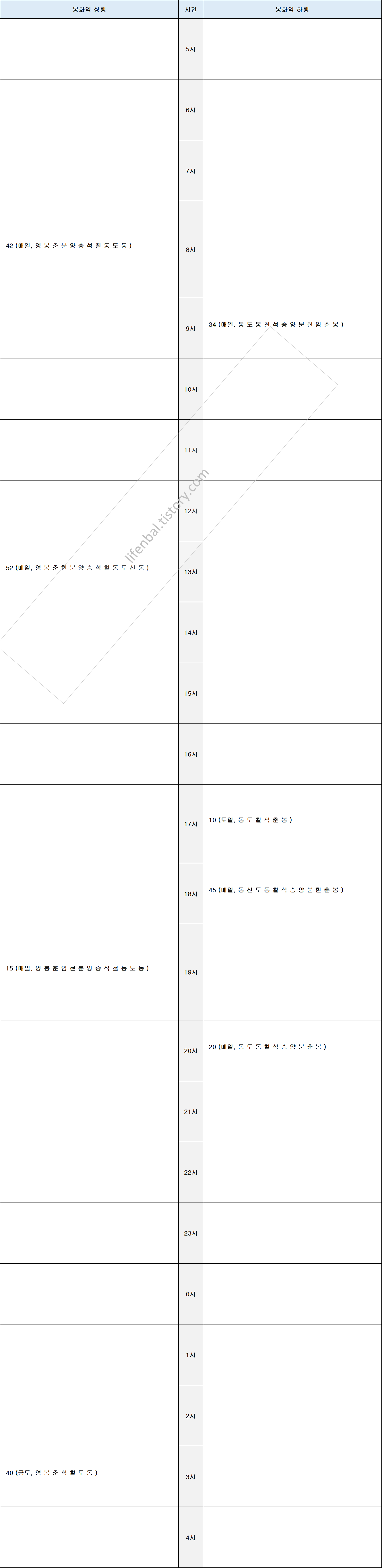 - 역별 각 노선별 시간표 첨부