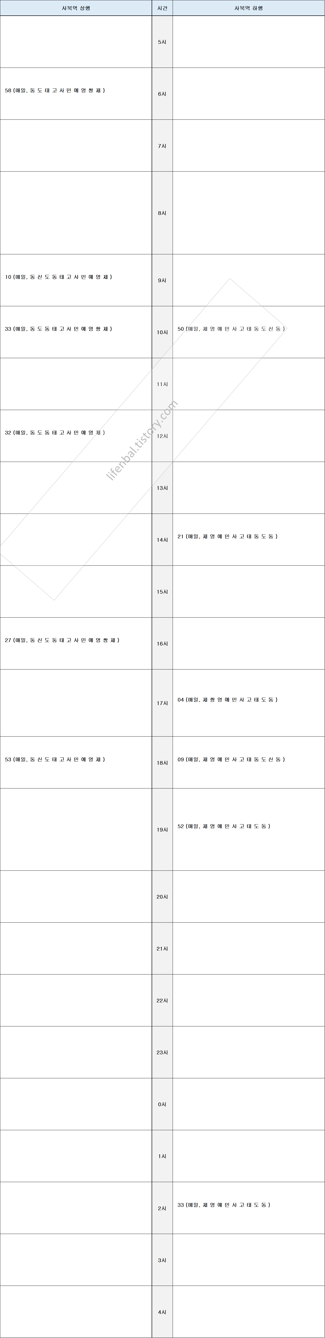 시간표 참고하여 출퇴근 및 여행일정 세우시기 바랍니다.