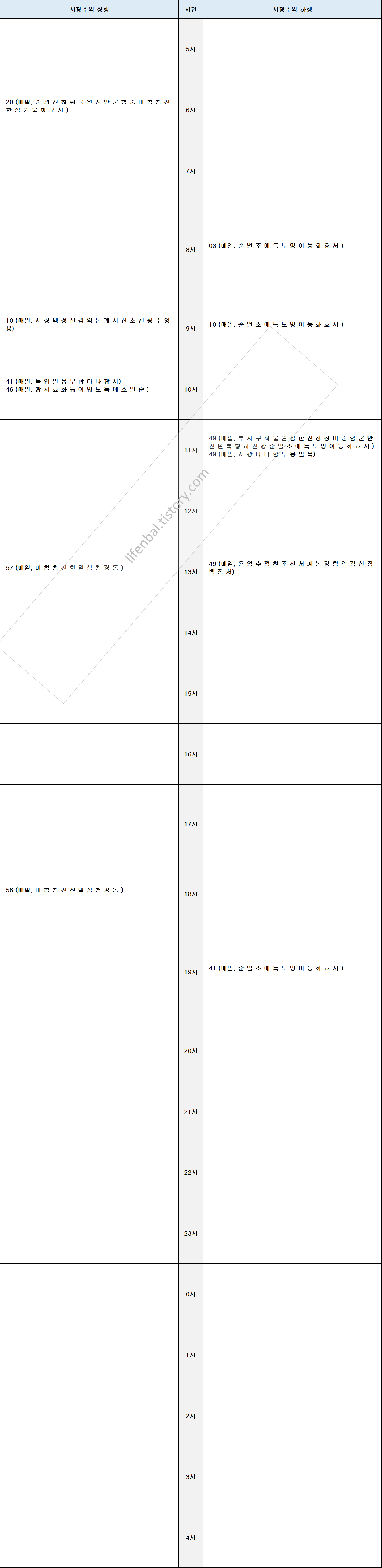 시간표 참고하여 출퇴근 및 여행일정 세우시기 바랍니다.