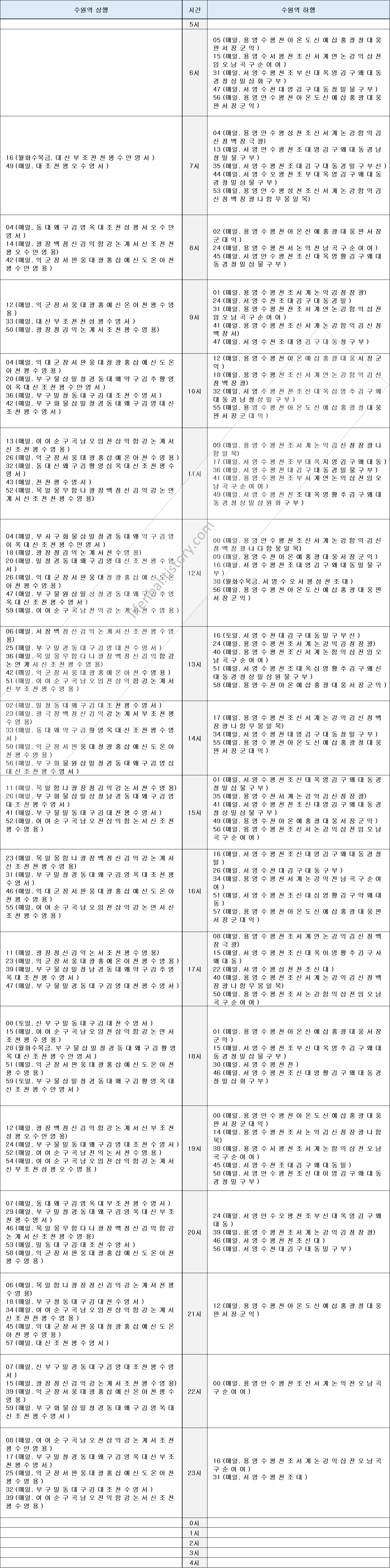 시간표 참고하여 출퇴근 및 여행일정 세우시기 바랍니다.
