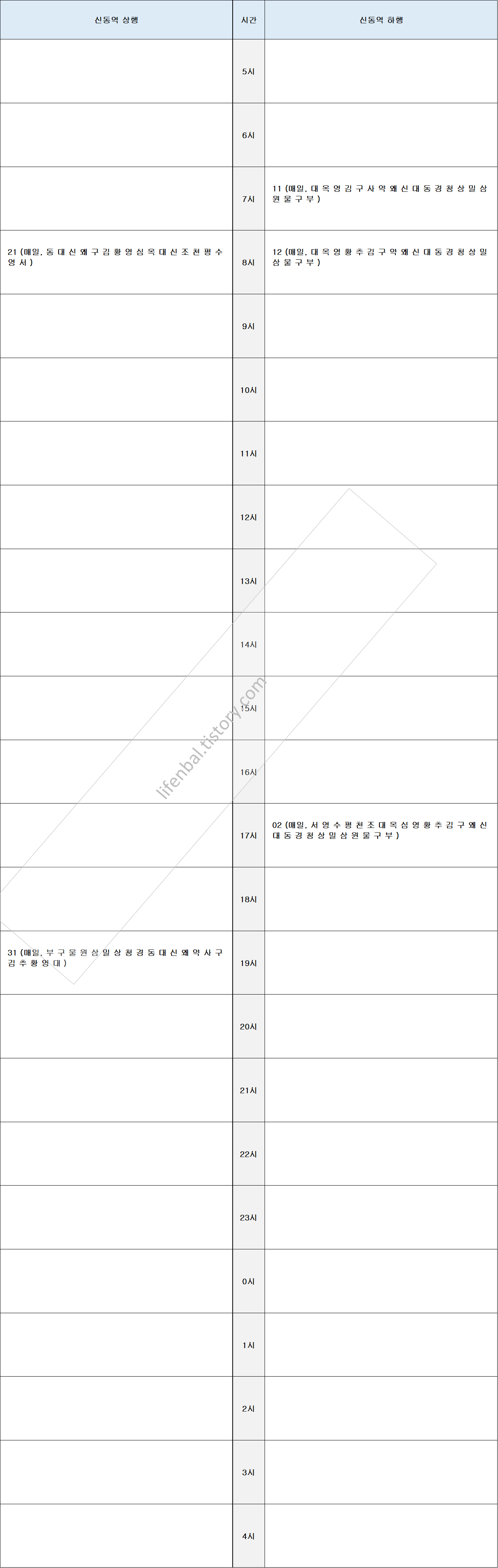 신동역(경부선) 최신 무궁화 열차 시간표입니다.