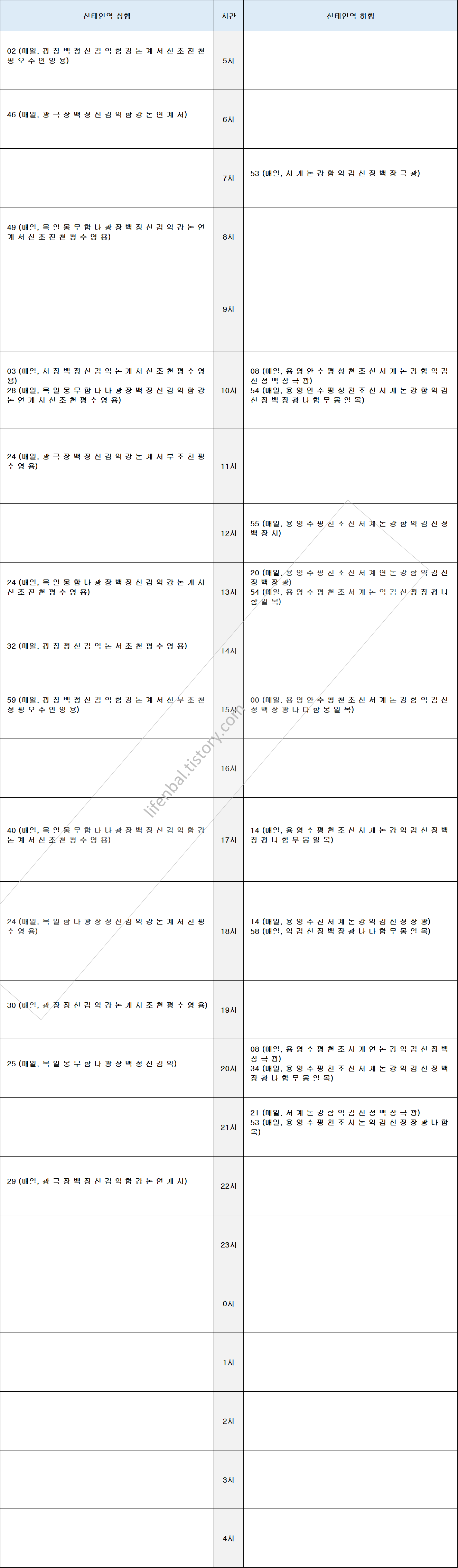 - 역별 각 노선별 시간표 첨부