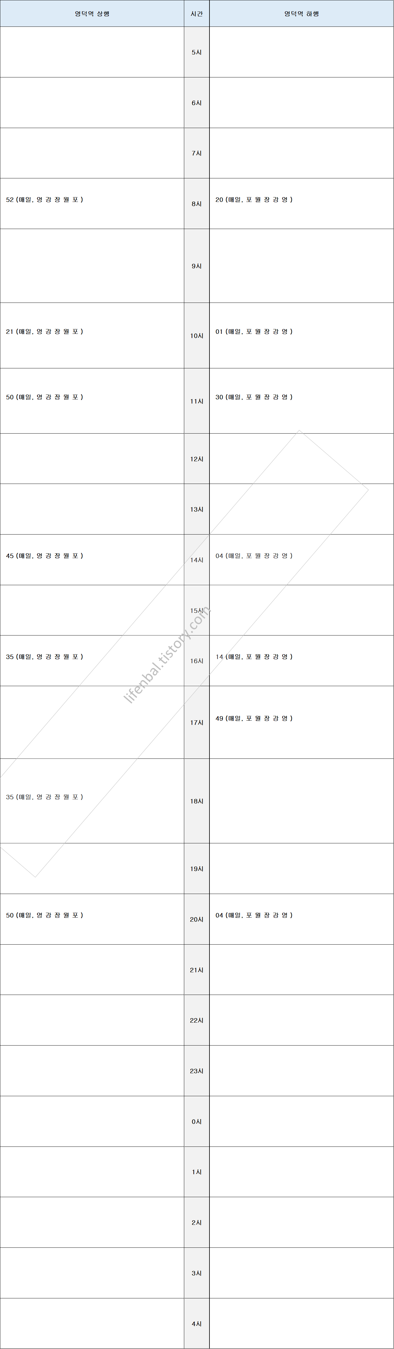 영덕역(동해선) 최신 무궁화 열차 시간표 시간표입니다.