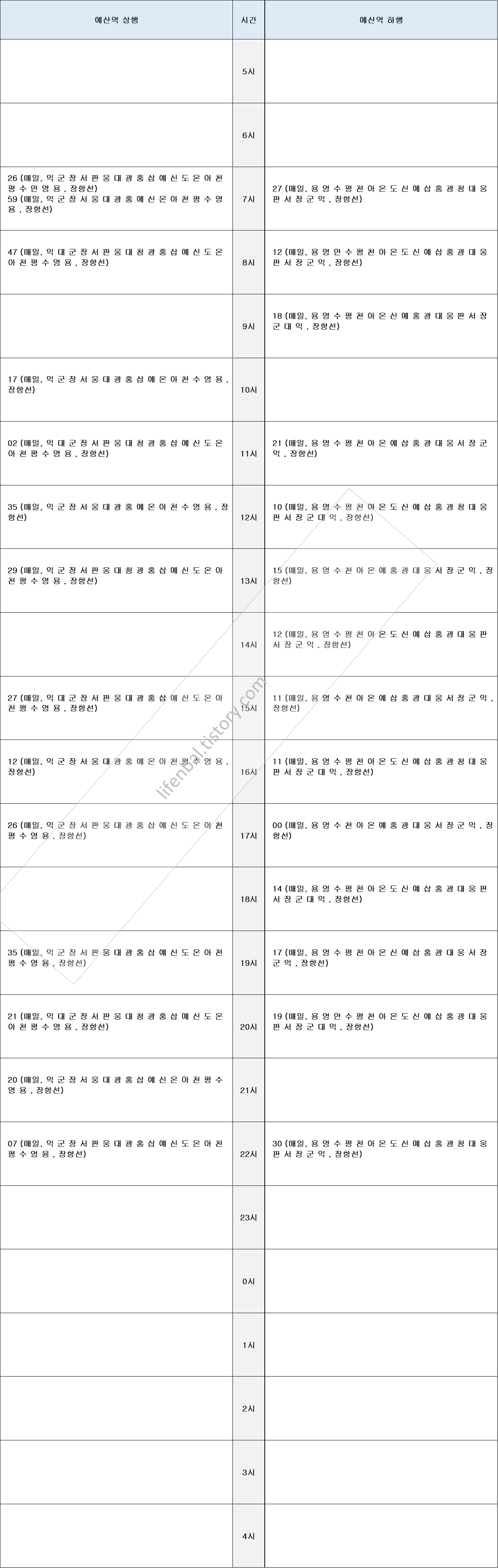 시간표 참고하여 출퇴근 및 여행일정 세우시기 바랍니다.
