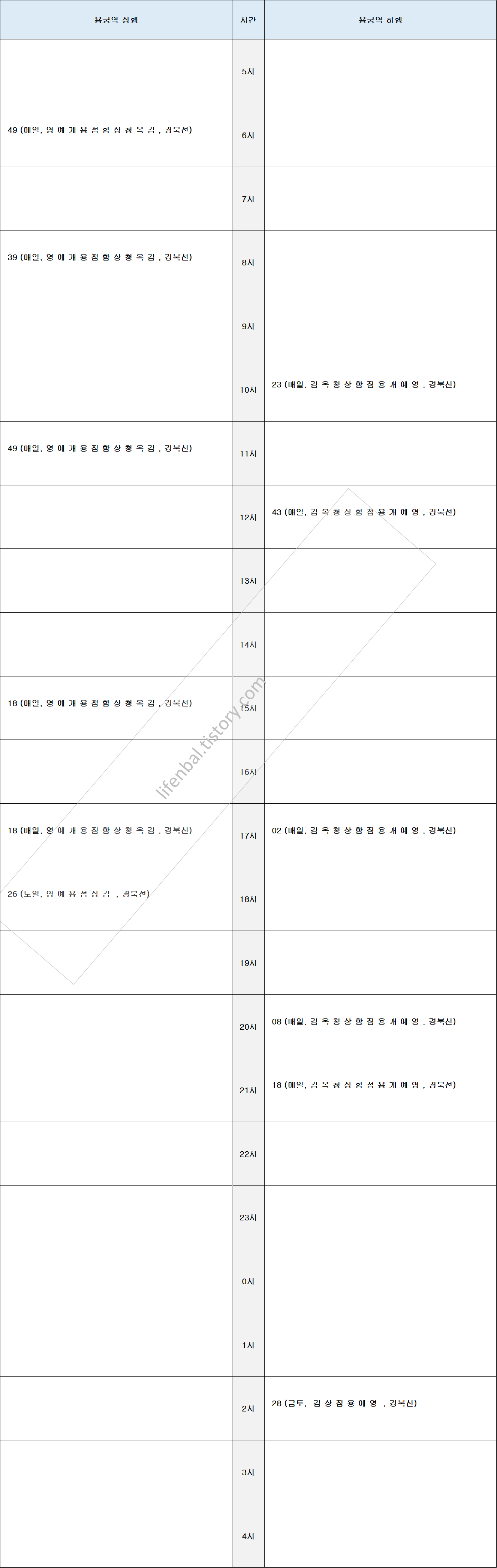 시간표 참고하여 출퇴근 및 여행일정 세우시기 바랍니다.