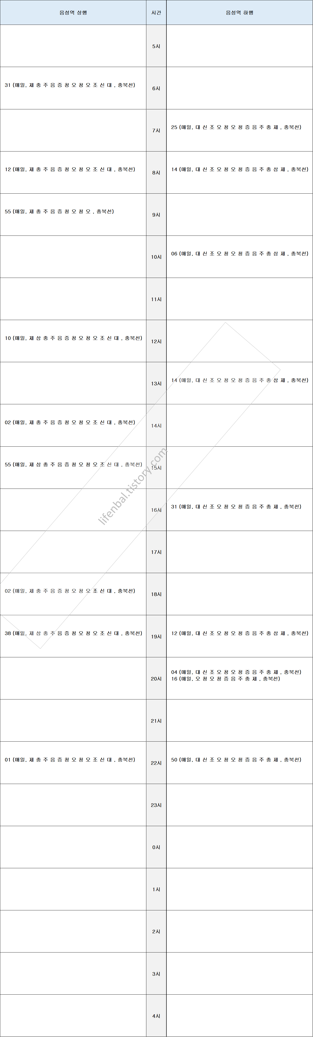 ※ 음성역 기차 열차 시간표 (충북선)