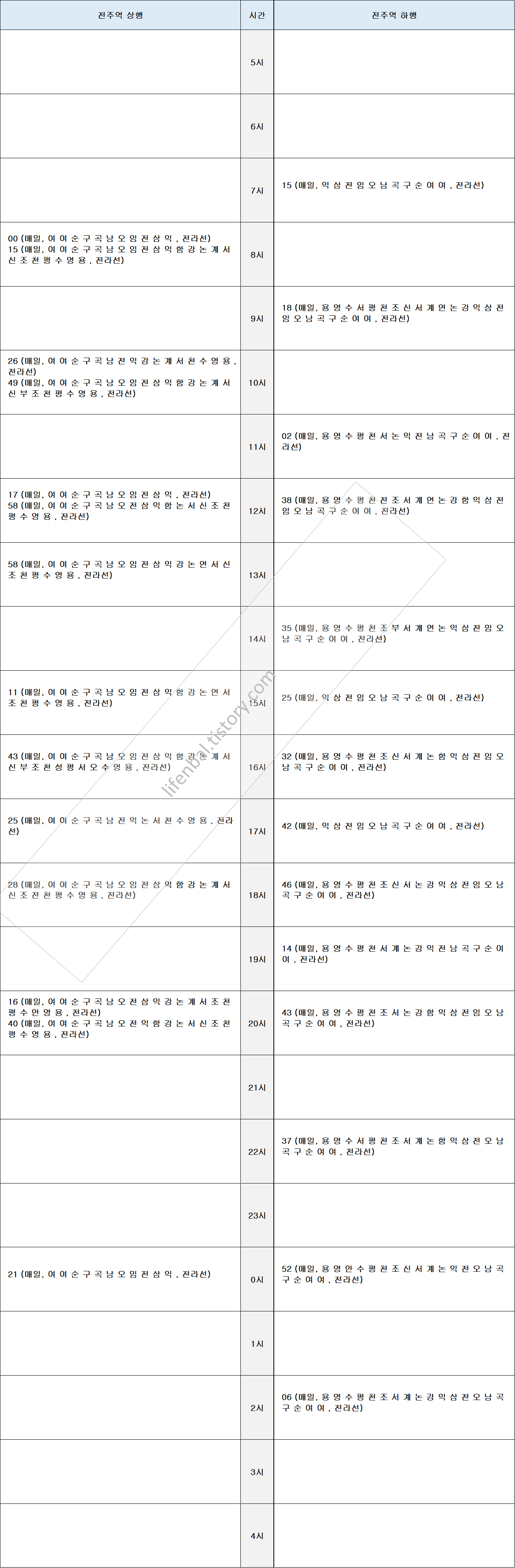 ※ 전주역 기차 열차 시간표 (전라선)