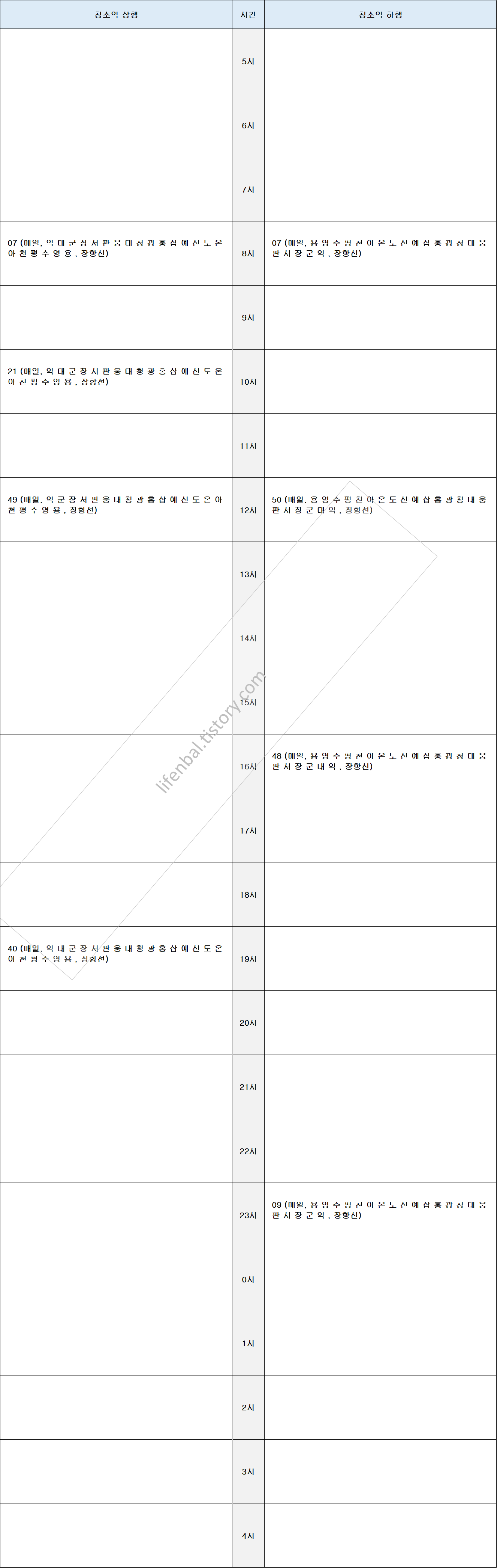 ※ 청소역 기차 열차 시간표 (장항선)