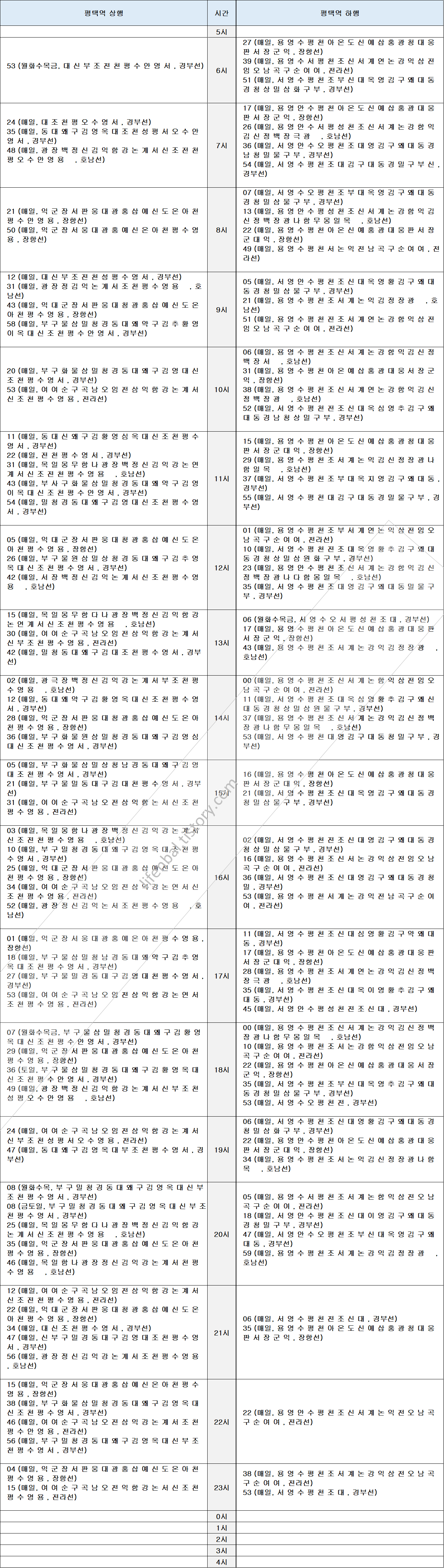 ※ 평택역 기차 열차 시간표 (호남선 경부선 전라선 장항선)