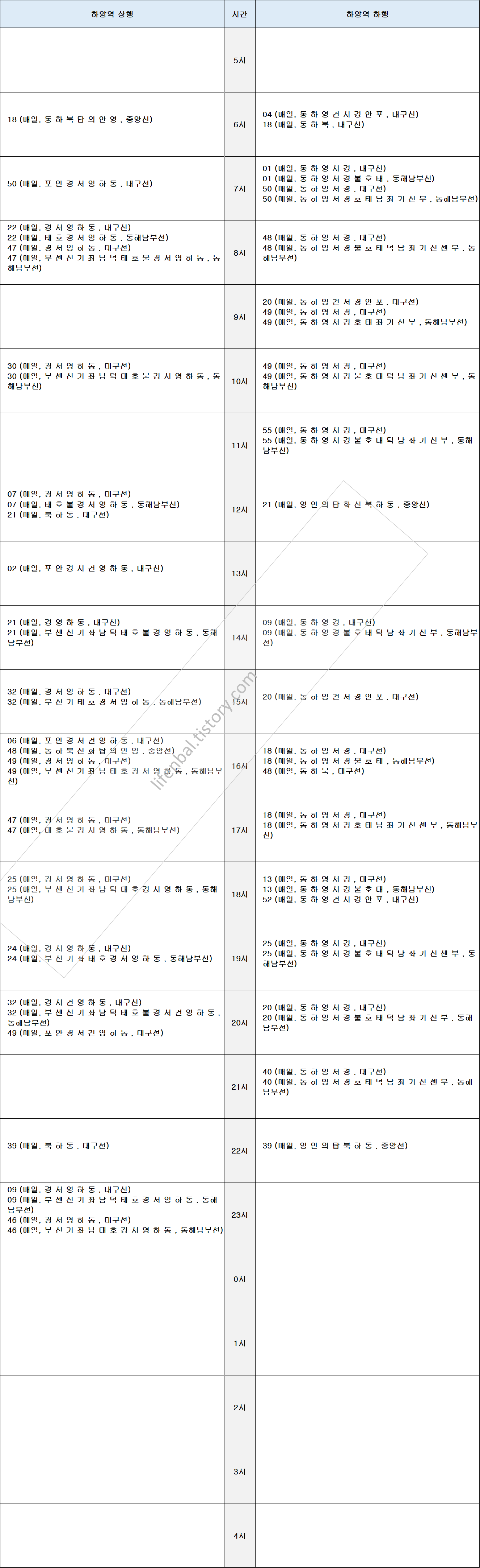 시간표 참고하여 출퇴근 및 여행일정 세우시기 바랍니다.