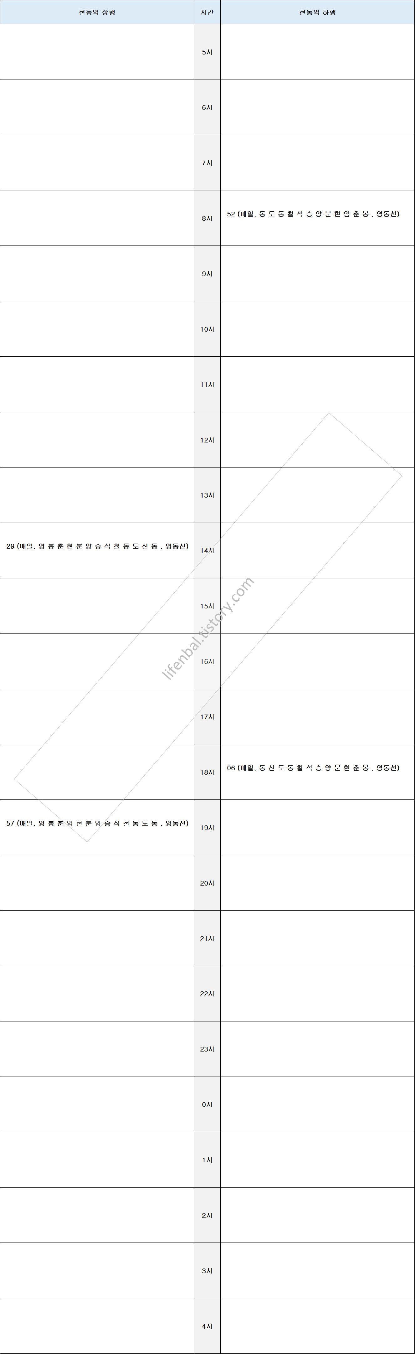 ※ 현동역 기차 열차 시간표 (영동선)