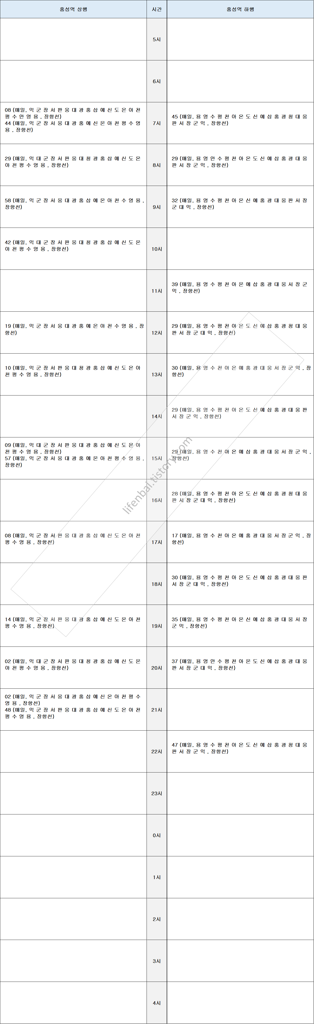 홍성역(장항선) 최신 무궁화 새마울 열차 시간표 입니다.
