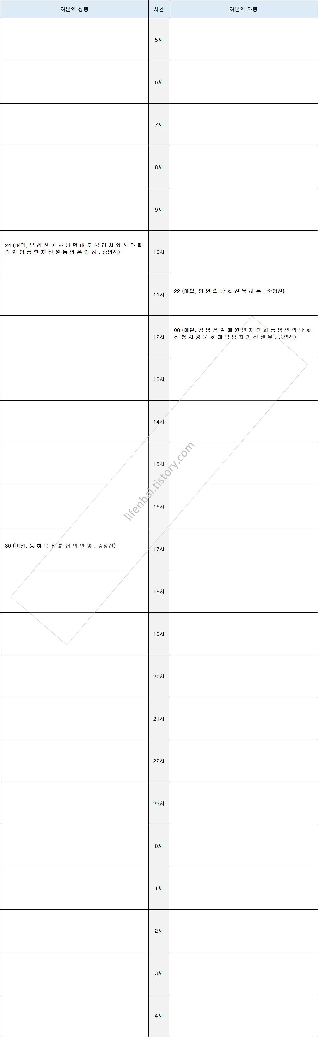 - 역별 각 노선별 시간표 첨부