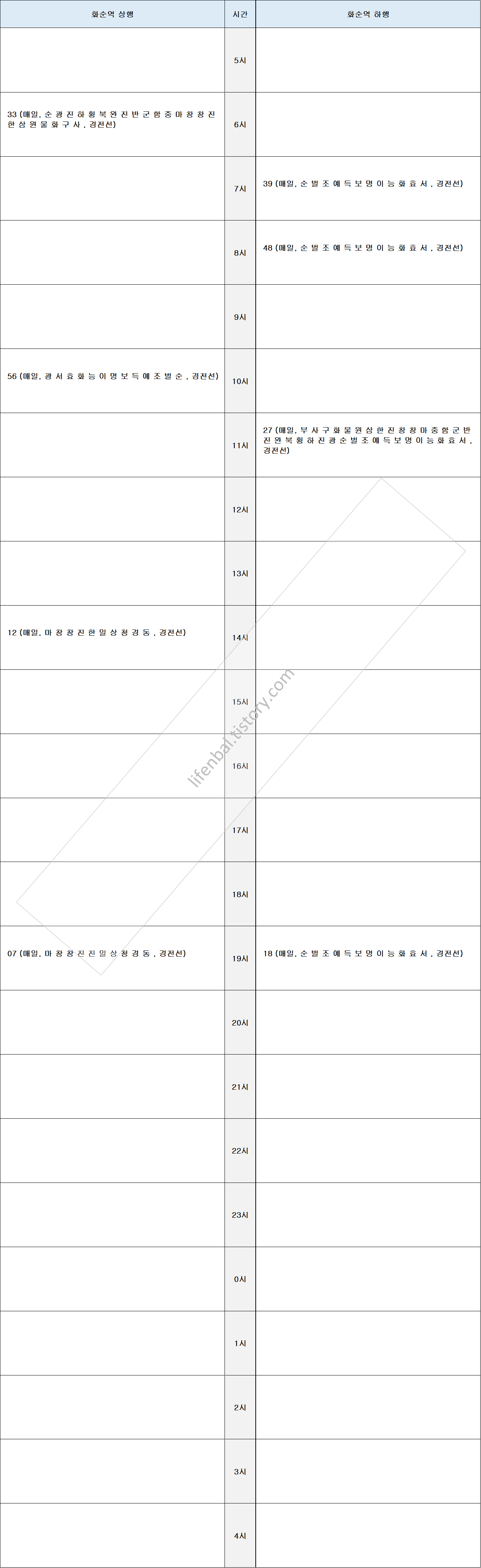 ※ 화순역 기차 열차 시간표 (경전선)